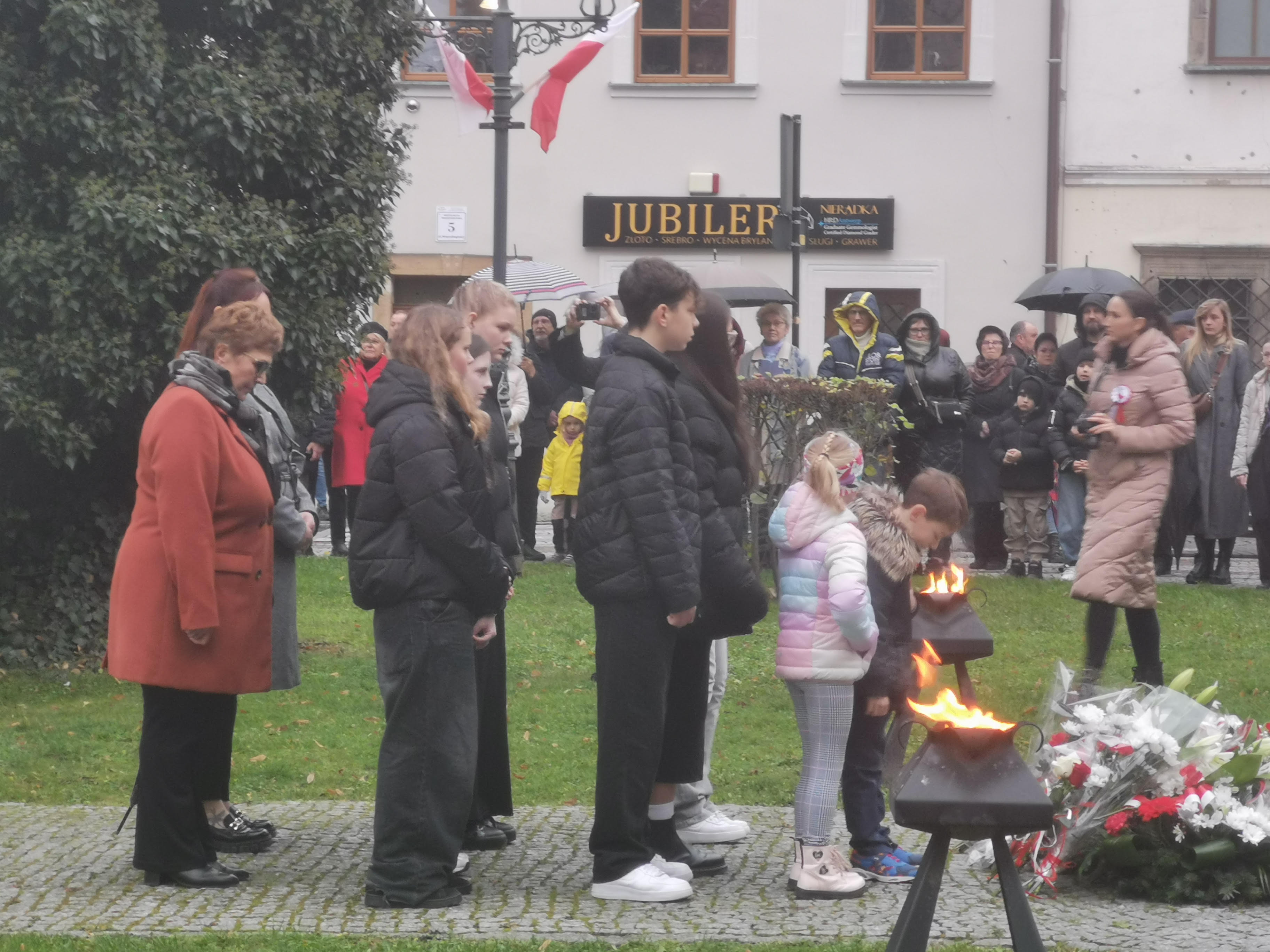 Z tej okazji delegacja uczniów wraz z Panią Dyrektor naszej szkoły wzięła udział w uroczystościach upamiętniających to ważne wydarzenie. Przedstawiciele szkoły złożyli kwiaty pod Pomnikiem Niepodległości, oddając hołd wszystkim, którzy walczyli o wolną i suwerenną Polskę.